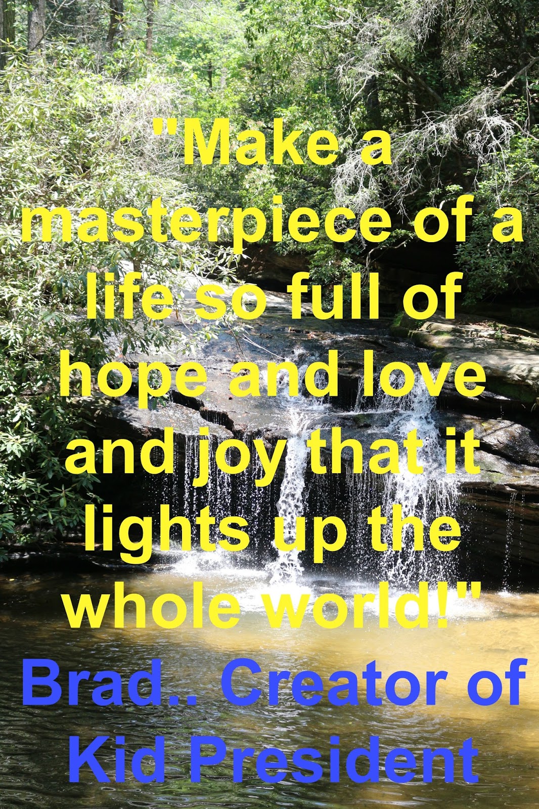 "Make a masterpiece of a life so full of hope and love and joy that it lights up the whole world!"